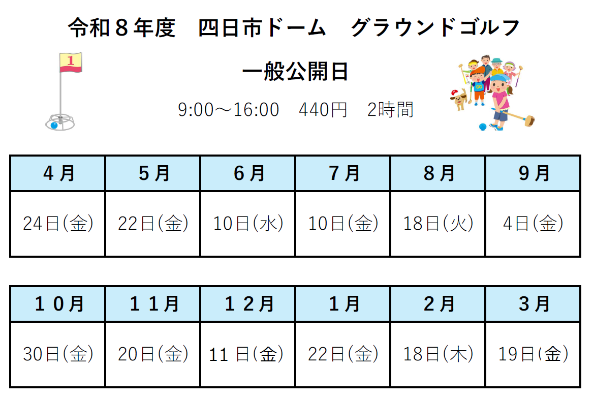 令和8年4月以降のグラウンドゴルフ一般公開は下記の日程で開催予定です。